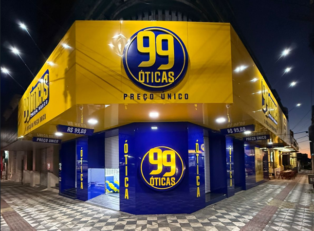 A 99 Óticas oferece todas as armações por R$ 99,00, sem diferenciação de modelos. São mais de 3 mil opções disponíveis, incluindo armações para grau. As lentes são fornecidas por marcas reconhecidas no mercado, além da lente própria da rede, a Harmony.