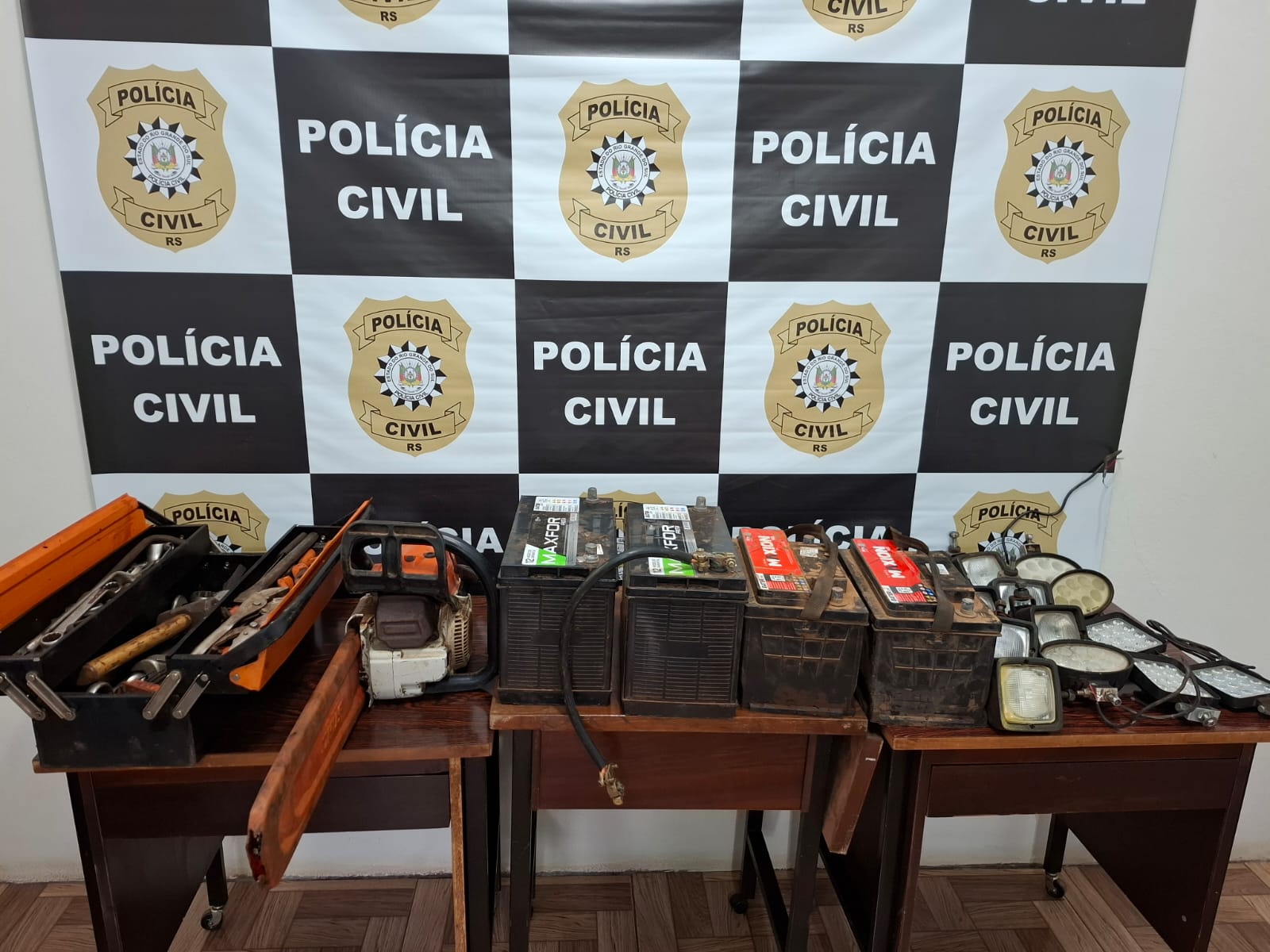 Durante as diligências, os policiais também encontraram diversos objetos furtados, como baterias automotivas, caixa de ferramentas, refletores e uma motosserra — itens relacionados aos crimes patrimoniais pelos quais o suspeito já vinha sendo investigado.