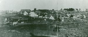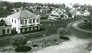 3915 – Boa Vista do Erechim na década de 20. No fundo vê-se o antigo Colégio São José, dirigido pelas Irmãs Franciscanas. À direita se destacam duas casas de madeira: a casa Oito e a Igreja Episcopal Brasileira. No centro está construído o prédio de madeira da Comissão de Terras, hoje, popularmente chamado Castelinho. Vê-se a Praça da Bandeira, que antes se chamava Praça Cristóvão Colombo.