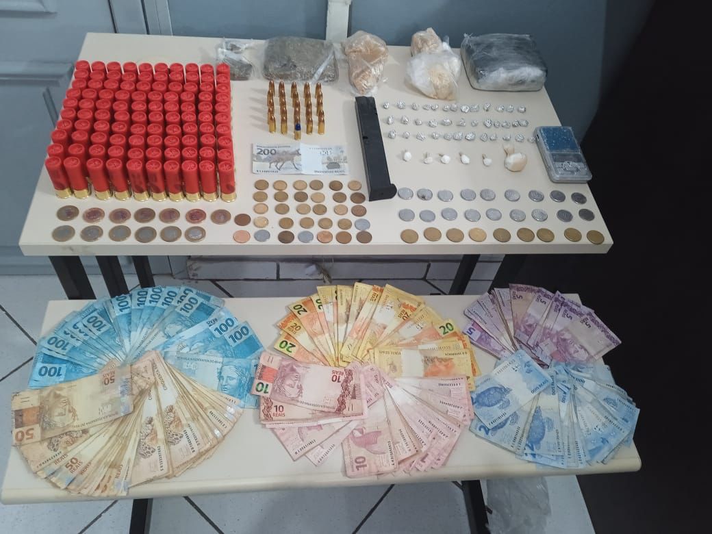 Segundo informado pela Brigada Militar, o BPChoque patrulhava no local quando deu voz de abordagem a um indivíduo. Durante a revista pessoal os policiais encontraram com o mesmo 100 munições de calibre .12, 26 munições de calibre .9mm, um carregador alongado para 30 munições de calibre .9mm, um tijolo de cocaína pesando 375g, seis buchas de cocaína, três pedras grandes de crack pesando 325 gramas, 37 pedras já fracionadas para o consumo de crack, 140g de maconha e R$ 8352,45 em dinheiro. Também foi apreendida uma motocicleta CG 125.