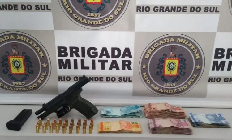 Durante a ação foram apreendidos uma pistola 9mm, dois carregadores, 27 munições intactas e R$1698 em moeda corrente.