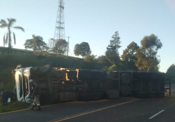 Uma carreta carregada tombou no trecho Passo Fundo/Erechim na manhã desta terça-feira (06). O fato ocorreu em Erebango.