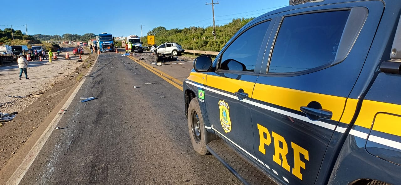 Na manhã desta quarta-feira (30) a equipe PRF atendeu um acidente tipo colisão frontal no km 255 da BR-386, em Soledade. Os veículos envolvidos foram um Sandero, com placas de Carazinho/RS, bem como um caminhão Atego, com placas de Pouso Novo/RS.