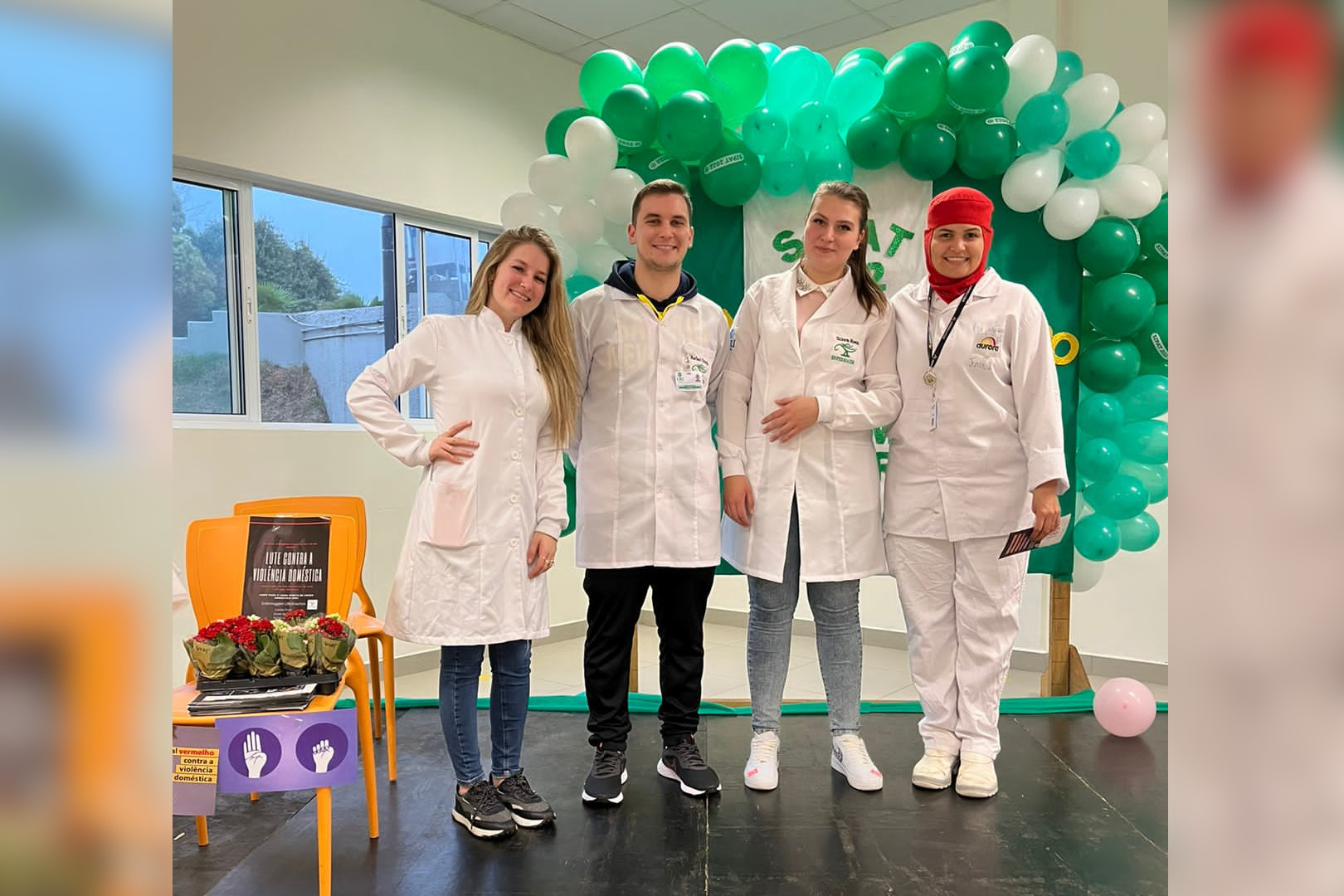 A iniciativa foi desenvolvida em parceria com a empresa Aurora Alimentos (Frigorífico Erechim II), juntamente com a Enfermeira do Trabalho, Juliana Novais. O objetivo da atividade, que fez parte da disciplina de Projeto Integrador II, foi o de realizar uma ação educativa sobre violência doméstica, informando sobre os tipos de violências, dentre elas, física, psicológica, sexual e moral.