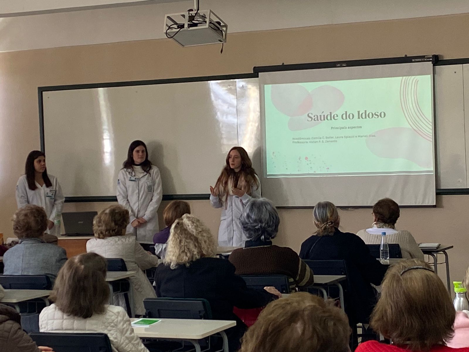 As alunas abordaram aspectos relevantes durante o processo do envelhecimento relacionados com escolhas alimentares inteligentes, prevenção, promoção da saúde e longevidade com qualidade de vida. Dentre estes, a importância da proteína relacionada com a prevenção da Sarcopenia, orientações para alimentação no diabetes mellitus, dislipidemia e hipertensão, e a diferença entre fome emocional e fisiológica.