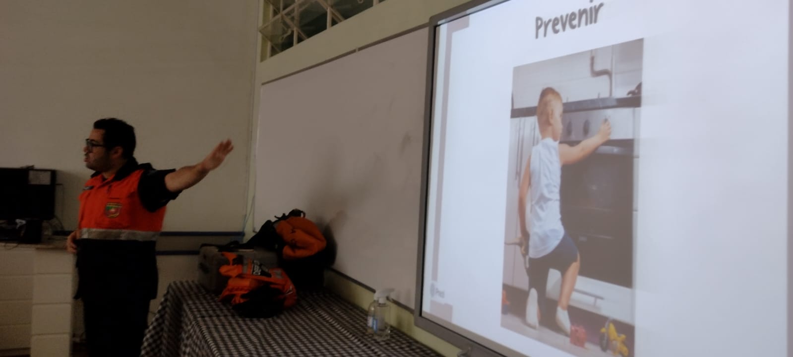 Proteger vidas, atuar na prevenção, mitigação e resposta à incidentes no município de Erechim. Esses são os objetivos da Defesa Civil e Força Voluntária Alto Uruguai, que também atuam na conscientização de crianças, jovens e adultos, nas escolas do município, com o projeto “Prevenção às violências e acidentes”. Na Escola Municipal de Educação Infantil Barão do Rio Branco, o projeto iniciou, na quarta-feira (21) com conversa dos voluntários com as crianças do Pré B sobre os “Cuidados no Lar e na Escola”. À noite, realizou-se a palestra para as famílias e profissionais da Escola. As próximas vivências serão nos dias 28 e 29 deste mês.