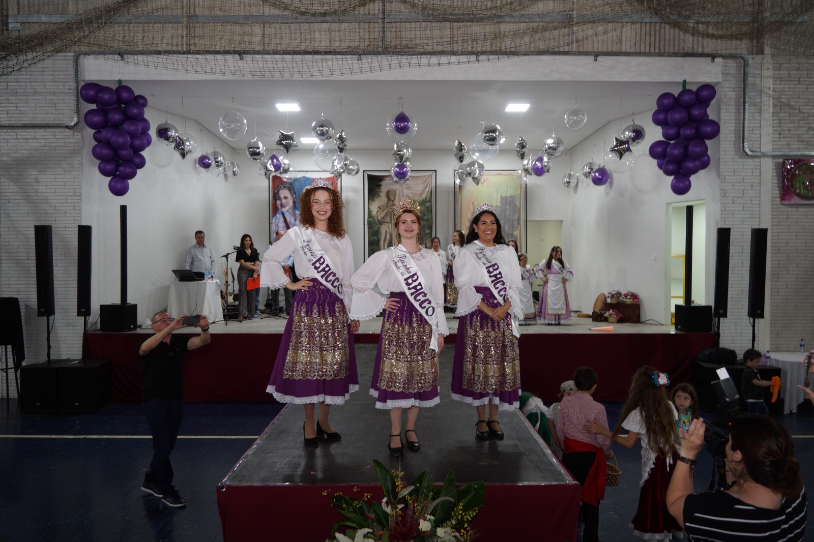 Depois disso, foram apresentadas a Corte Infantil 2024/2025 e as vencedoras do concurso. Veja como ficou composta a Corte da Festa Di Bacco 2024/2025: