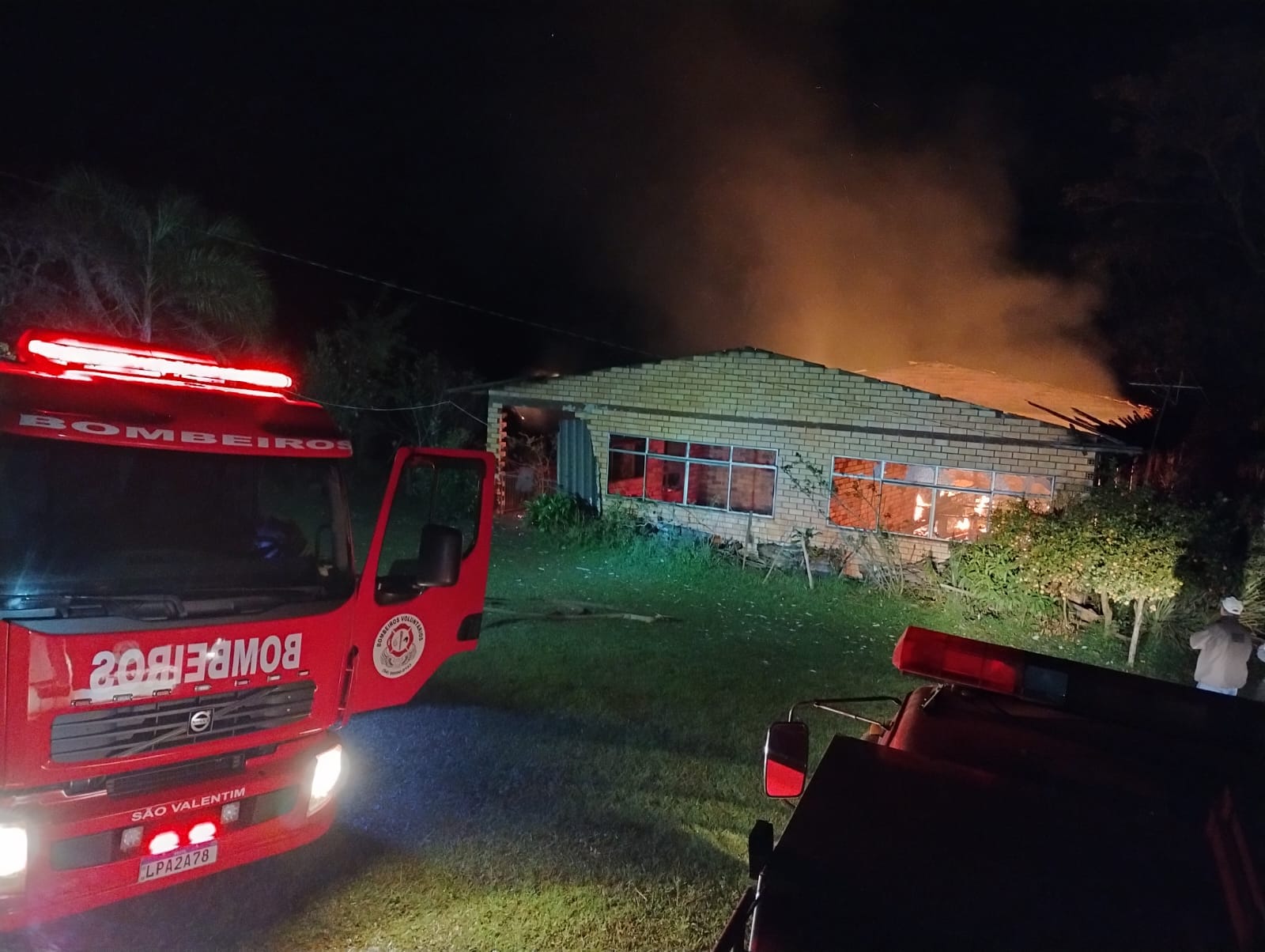 De acordo com os Bombeiros Voluntários, por volta das 04h55 min a equipe deslocou até a localidade informada e receberam a informação que uma idosa estava no interior da casa que era consumida pelas chamas.