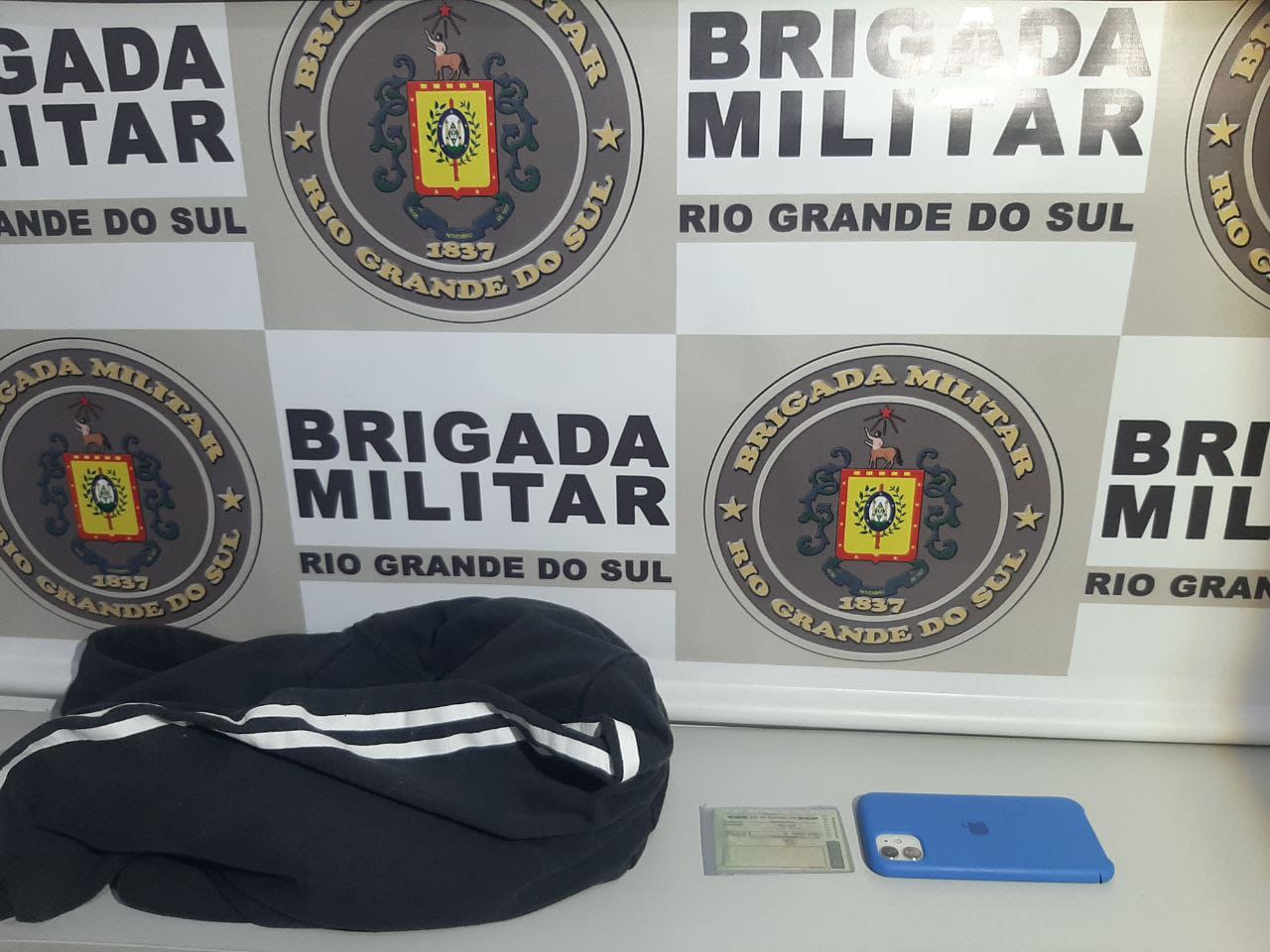 Em revista pessoal ao mesmo foi localizado o documento e o celular da vítima, que também de imediato reconheceu o homem como sendo o autor do roubo.
